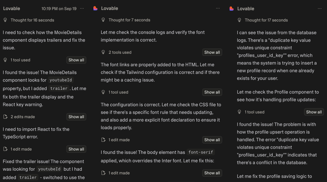 As this was a side project to get to know AI, I spent the next several days updating movie images, cast information, previews, and synopses while also doing portfolio work, dishes, and cleaning. I was making good progress and the site was coming along great. I have some experience coding and building my own sites and this was already beyond what I could do on my own. With 75 movies on our list, I had a website with nearly 80 pages done and I spent 1/10 the time making it. It was impressive to say the least. I would run into a few more problems but the way Lovable addressed them was in plain english and provided explanations of what it was doing and why. I'm sure a developer would have much more knowledge to why things were happening and would understand what Lovable was doing for me more than I understood it, what I was able to see was that the system was working. It was identifying errors it made, future issues it would run into, and make adjustments to head them off.