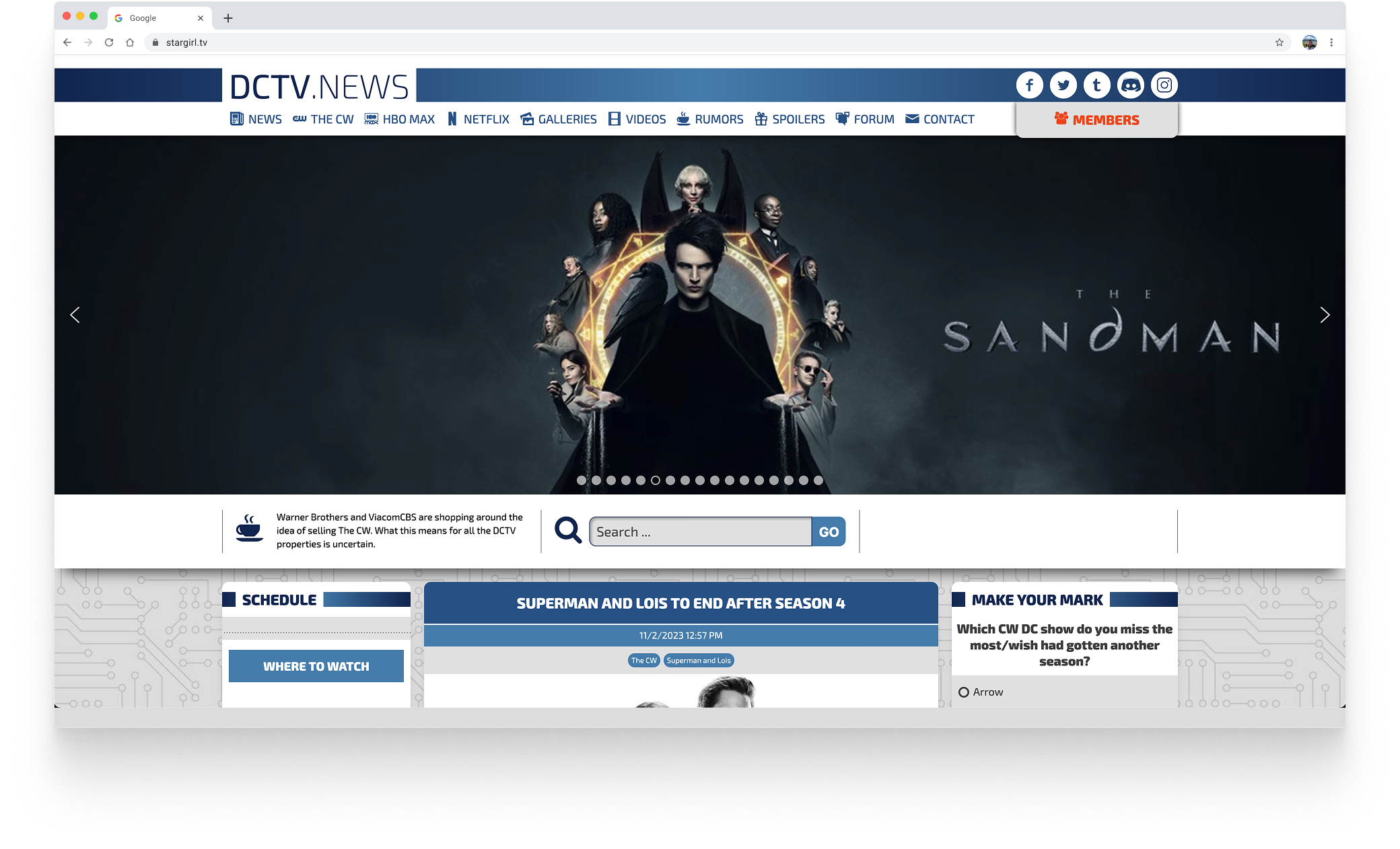 While Supergirl.tv was experiencing fantastic success, whispers of other new shows were also coming. Doubling down on the strategy that worked so well for Supergirl, I purchased; Thewitcher.tv, Batwoman.tv, Stargirl.tv, Youngjustice.tv, Harleyquinn.tv, DCTV.news and finally Supermanandloistv.com. As each new show was announced I would spin up a new website utilizing the templates I designed for the content management system Joomla. Running these websites was growing more and more difficult to do so I invited my wife and mother to join me. Before we knew it, we had a staff of seven volunteers who also loved comicbook tv as much as we did.